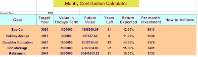 Manish: I don’t know how serious you intend to keep this spreadsheet. If you are, then you need to add more dimensions to this. Remember, as a long term goals gets closer, you need to make it more secure. If you keep all the money for your daughter’s/son’s marriage in stocks and the markets crash on engagement day, your would-be-Sambandhi might get pissed off.